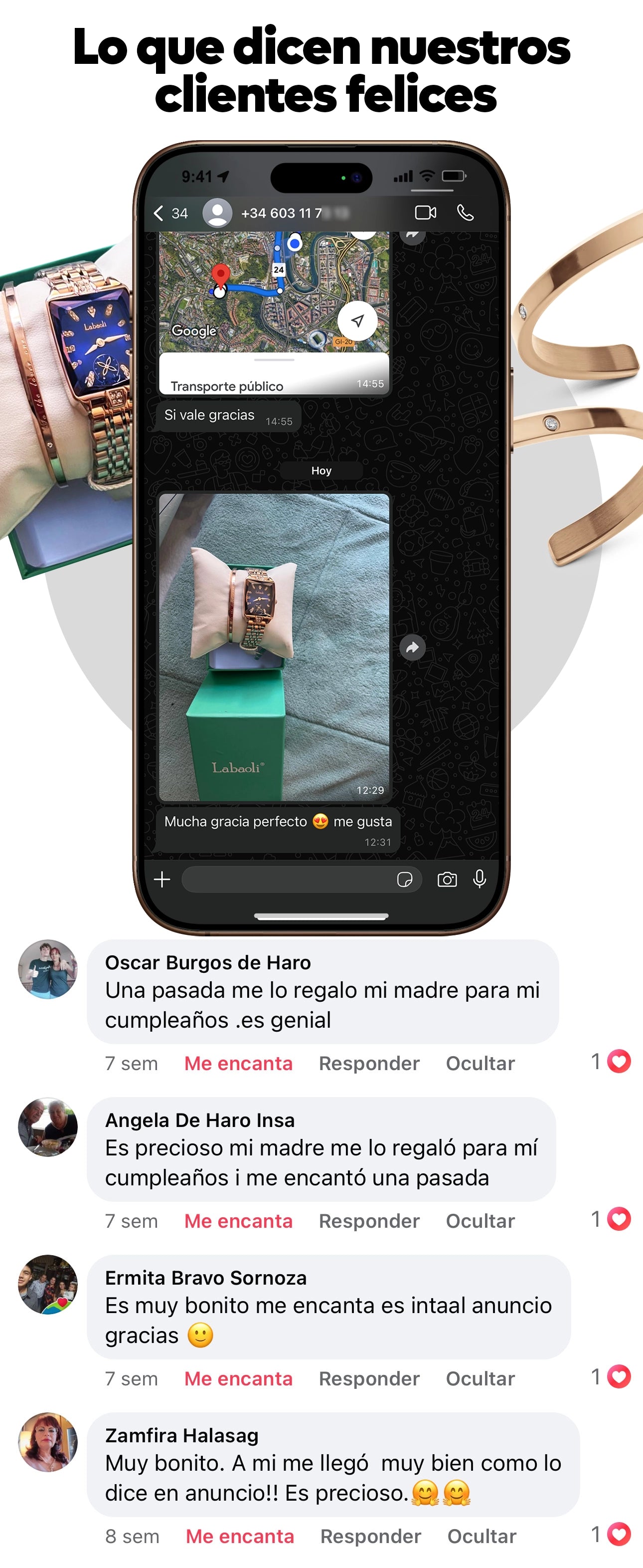 Recibirás exactamente la misma reloj que ves en la foto, pero te aseguramos que en persona es aún más impresionante. Su brillo, su elegancia y su calidad superarán tus expectativas. Si por alguna razón no estás completamente satisfecho, nuestro equipo de soporte está siempre disponible para asistirte.